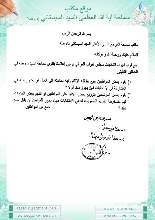 موقع مكتب سماحة المرجع الديني الأعلى السيد علي الحسيني السيستاني (دام ظله)