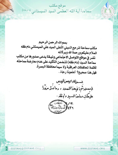 موقع مكتب سماحة المرجع الديني الأعلى السيد علي الحسيني السيستاني (دام ظله)