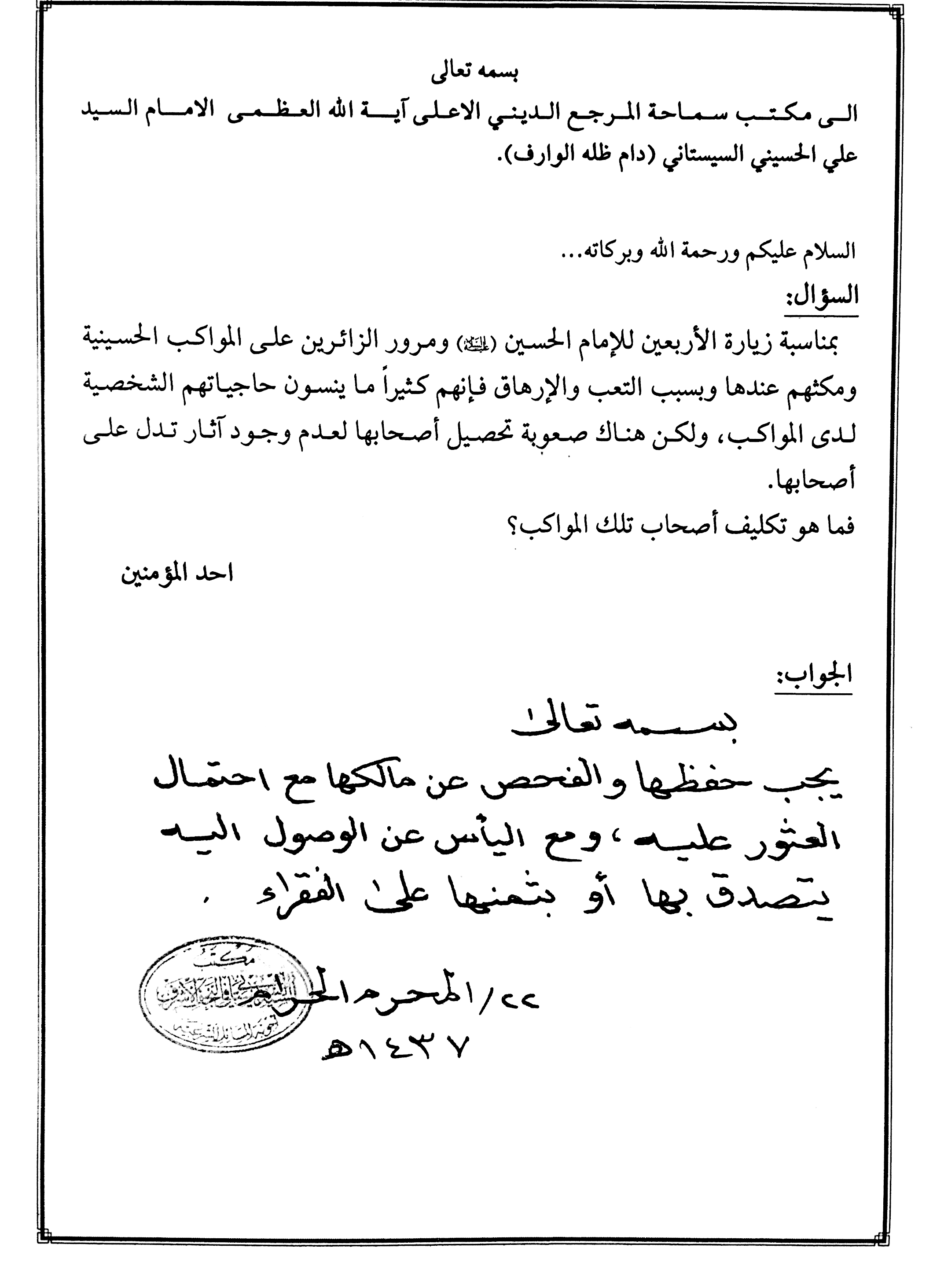 إستفتاء حول حكم الحاجيات المفقودة في المواكب الحسينية