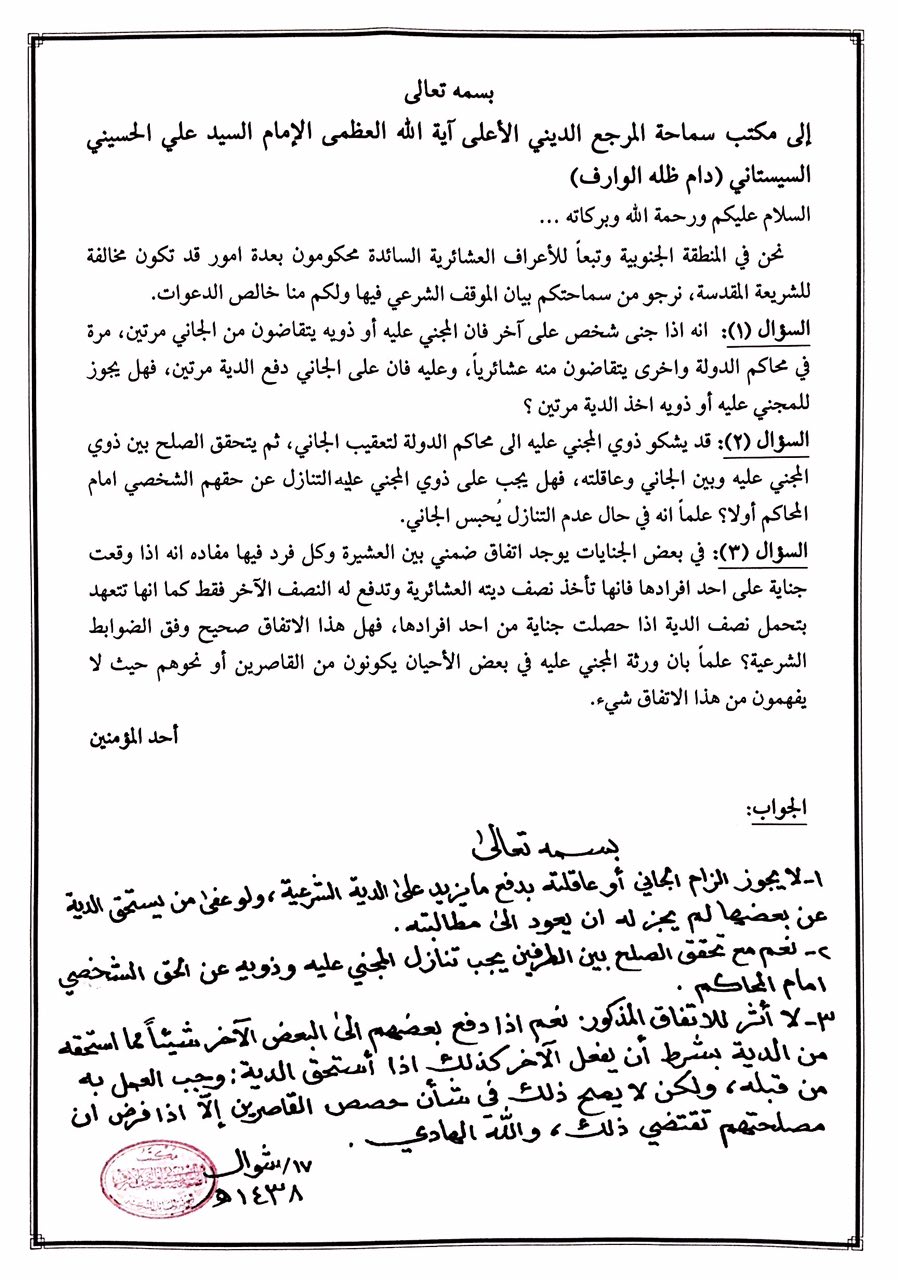 موقع مكتب سماحة المرجع الديني الأعلى السيد علي الحسيني السيستاني (دام ظله)