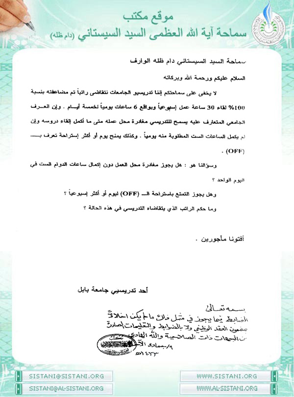 موقع مكتب سماحة المرجع الديني الأعلى السيد علي الحسيني السيستاني (دام ظله)