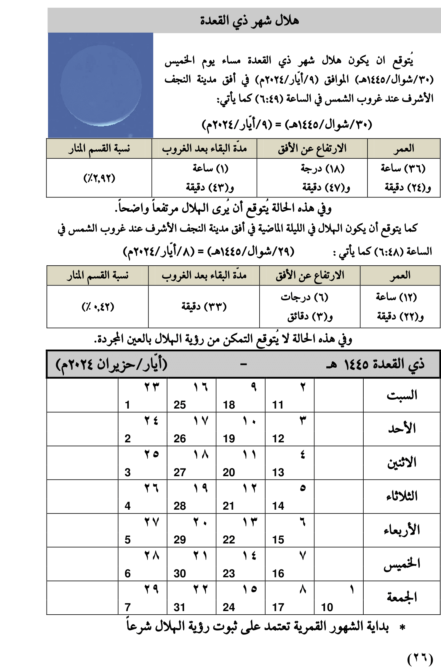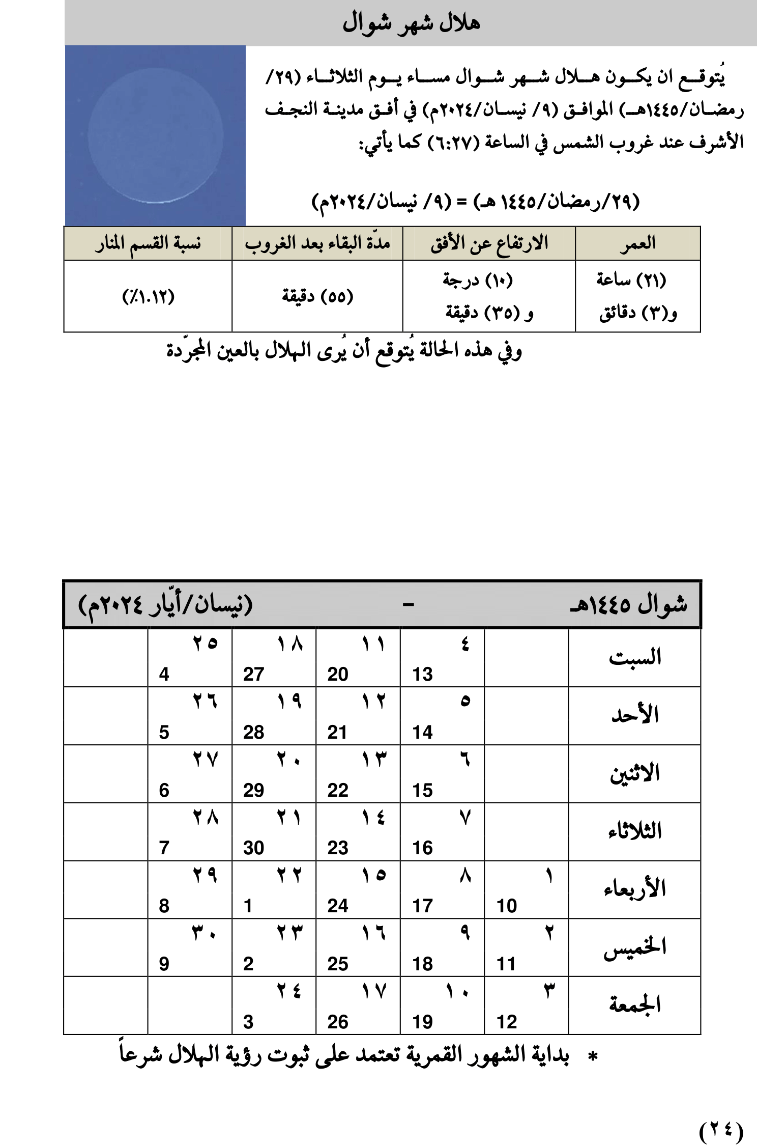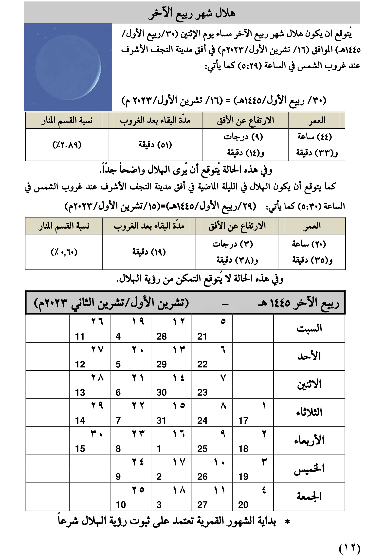 مواقيت الأهلة لعام 1445 هـ + تحميل الملف