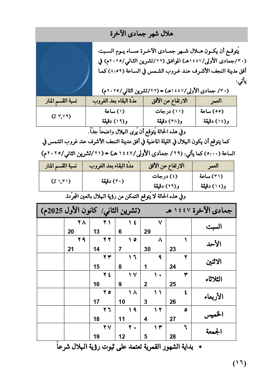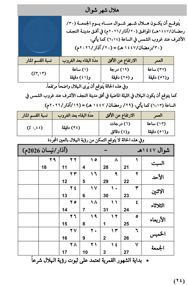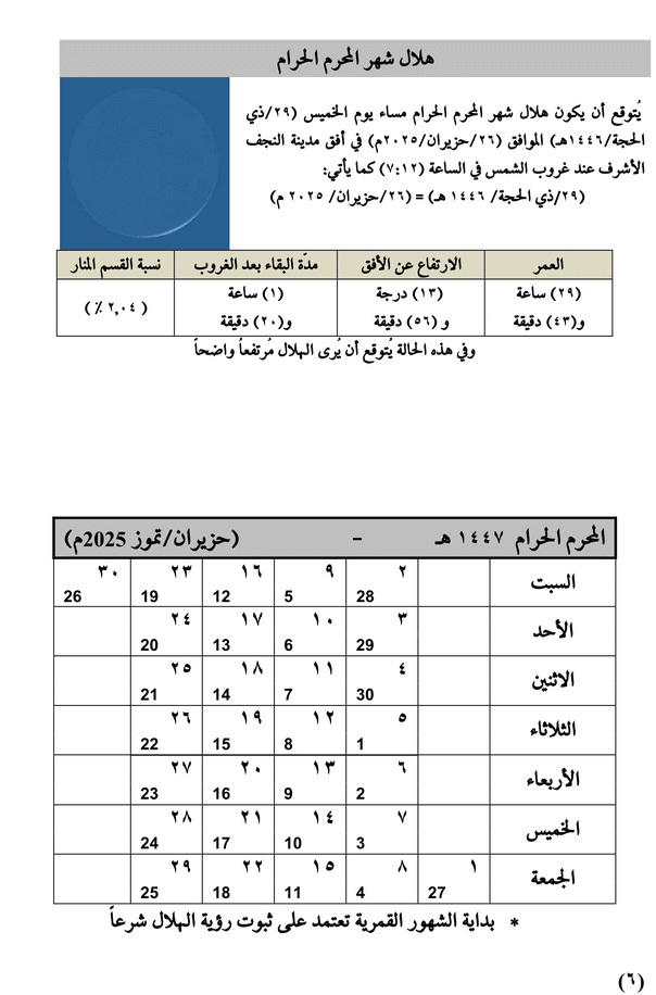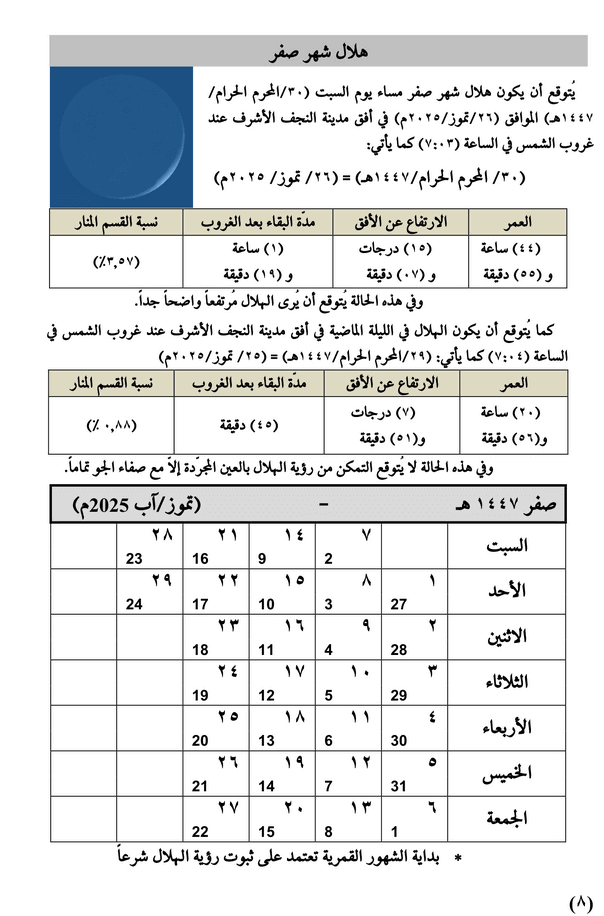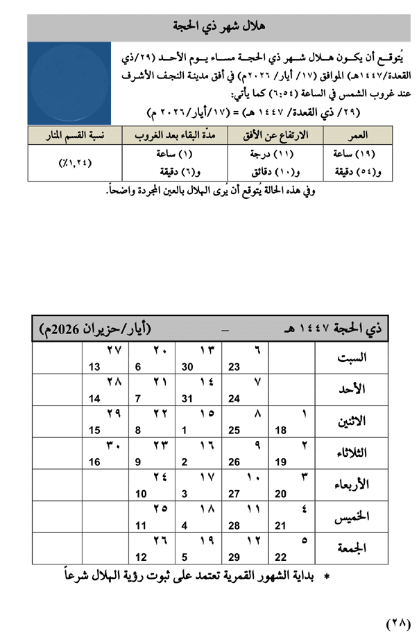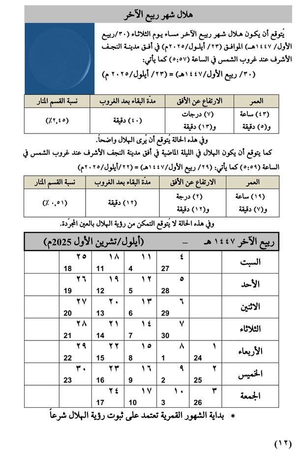 مواقيت الأهلة لعام 1447 هـ + تحميل الملف