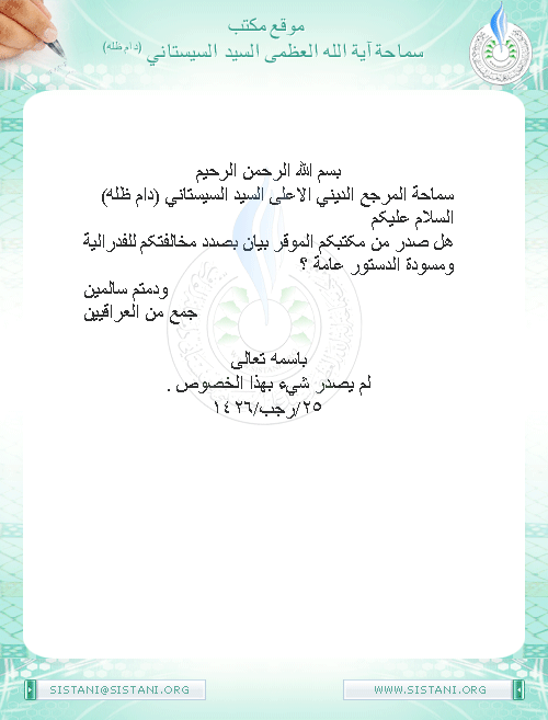 موقع مكتب سماحة المرجع الديني الأعلى السيد علي الحسيني السيستاني (دام ظله)