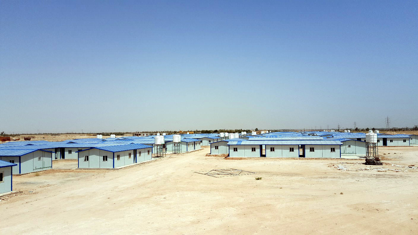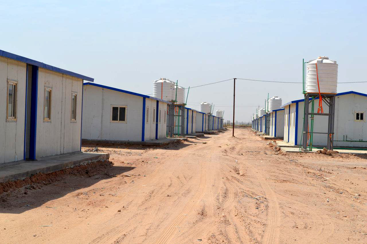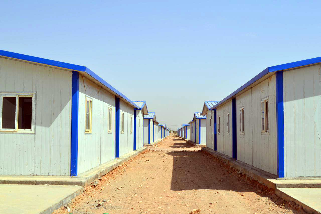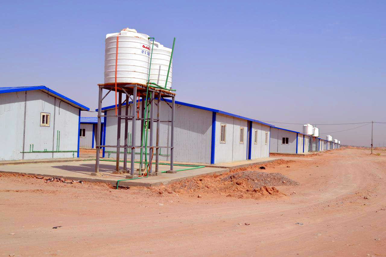 وقد تم انجاز المرحلة الاولى بانشاء (300) وحدة سكنية لاسكان ثلاثمائة عائلة، وهي وحدات عازلة للحرارة بمساحة (40) متراً مربعاً لكل وحدة، تتألف من (غرفة معيشة + مطبخ + غرفتي نوم + حمام).