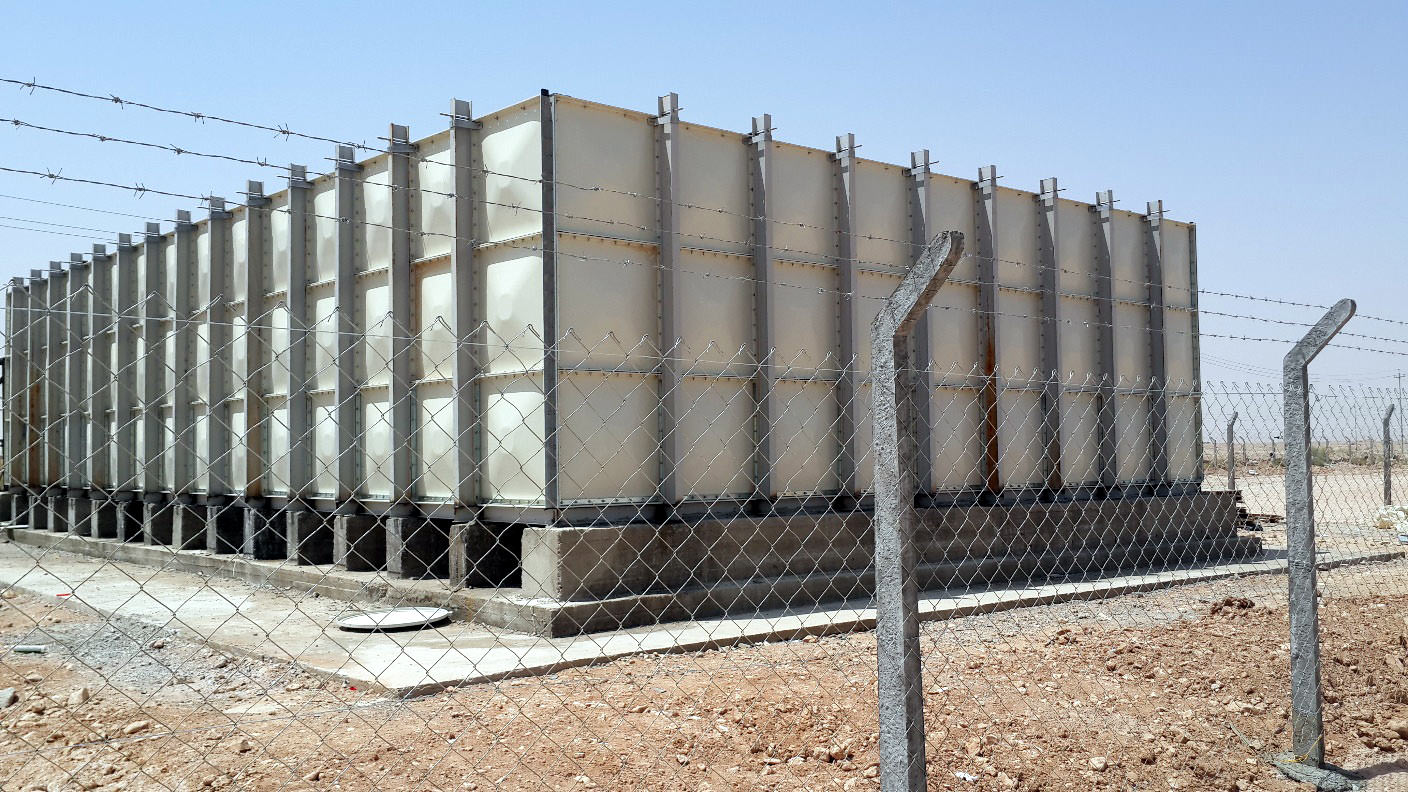 4- خزان ماء رئيسي للمجمع نوع GRP حديث و معتمد لخزن المياه الصالحة للشرب بالإضافة إلى خزانات للماء فرعية لكلّ مجموعة من المنازل.