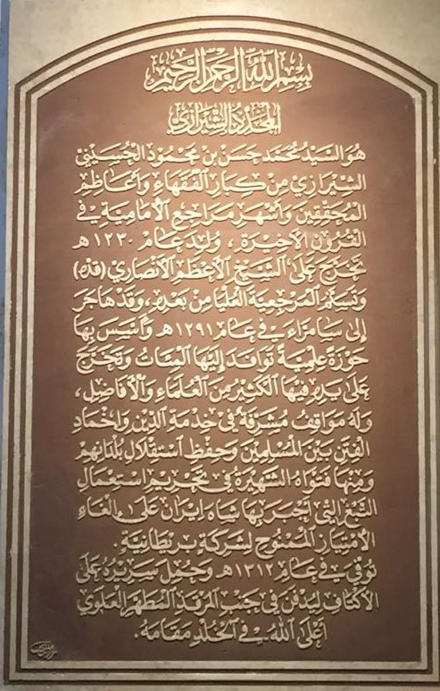 إن هذه المدرسة المباركة هي آخر ما ينتسب في مدينة سامراء المقدسة الى مرجع الامة في عصره المجدد السيد الميرزا محمد حسن الحسيني الشيرازي رضوان الله عليه ، حيث ذكر المؤرخون انه لما هاجر الى جوار الامامين علي الهادي والحسن العسكري عليهما السلام عام 1291 من الهجرة وأقام حوزته العلمية بالقرب من مشهدهما المقدس قام بخدمات جليلة لهذه المدينة المقدسة التي لم تكن تلك الايام الا بلدة صغيرة ومعظم بيوتها مبنية بالطين، فصرف اموالاً طائلة في اقامة جسر خشبي وصل به ضفتي دجلة وكان ممدوداً على ثمانية واربعين قارباً فقدم بذلك خدمة كبيرة لأهالي سامراء والزوار الوافدين اليها كما بنى سوقاً كبيراً ودوراً كثيرة وحماماً للرجال وآخر للنساء وأماكن لإيواء الزوار، الا ان هذه المباني والشواهد اندثرت جميعاً ولم يبق منها عين ولا أثر.