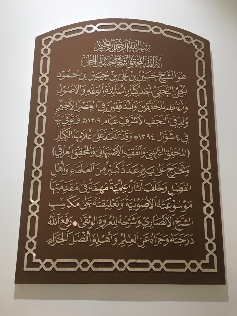 والشيخ حسين الحلّي وما أدراك ما الشيخ حسين الحلّي؟ ذلك العالم المحقّق الفقيه الأصولي الذي كان يحظى بمكانة مميّزة عند أستاذه المحقّق النائيني (قدّس سرّه)، ويعرف عظمته اهل الفضل والعلم وإن عاش مغموراً عند عامة الناس، وقد أخذ على عاتقه مهمّة تربية الطلاب في الحوزة العلمية عقوداً من الزمن، وصرف في ذلك معظم عمره الشريف فتخرّج من مجلس درسه العشرات من المجتهدين وكبار الفضلاء، وترك تراثاً علمياً ضخماً لا يزال معظمه مخطوطاً، وقد طبع منه بأمر سيدنا المرجع الاعلى موسوعته الاصولية في اثني عشر مجلداً كما طبع من قبل بعض تراثه الفقهي وهو (شرح العروة الوثقى) بقلم العلامة الشيخ حسن سعيد و(بحوث فقهية ) بقلم العلامة الشهيد السيد عز الدين بحر العلوم.