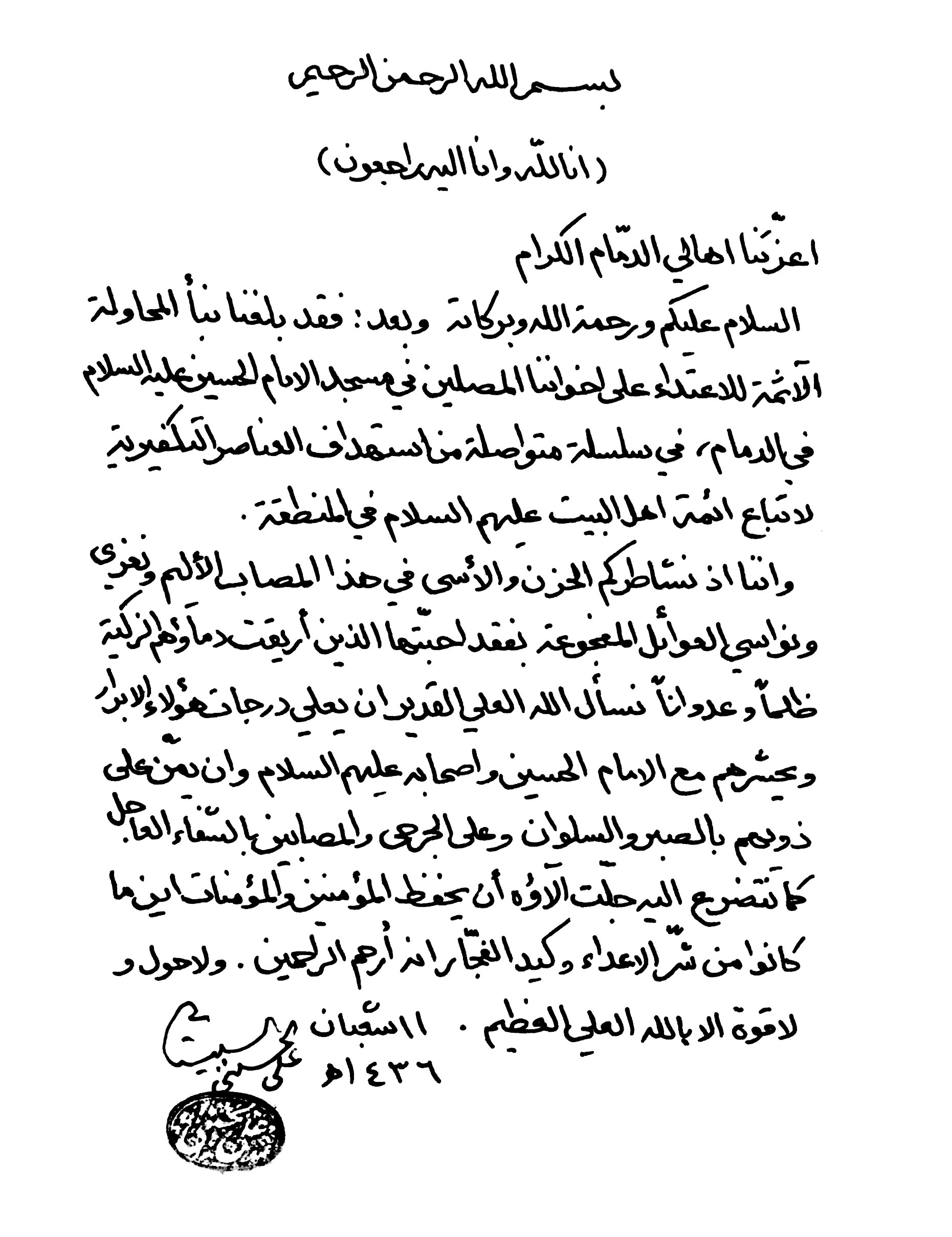 نص ما ورد بشأن الأوضاع الراهنة في العراق في خطبة الجمعة لممثل المرجعية الدينية العليا في كربلاء المقدسة فضيلة العلاّمة السيد احمد الصافي في (21/ شوال /1436هـ) الموافق( 7/ آب/2015م )